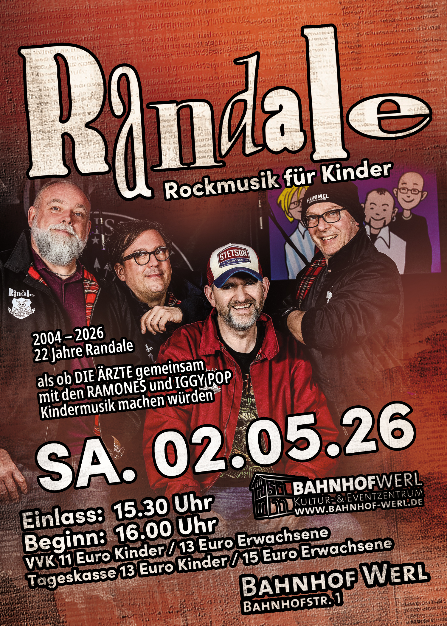 VVK inkl. Gebühren (bei der Stadtinformation Werl und allen weiteren HellwegTicket-VVK-Stellen und online über www.hellwegticket.de sowie über eventim.de)