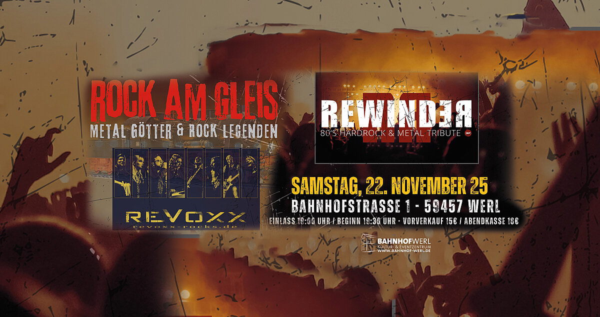 Weiter geht es im November mit ROCK am GLEIS am Samstag, 22.11., mit gleich zwei hervorragenden Cover- und Tribute-Bands (reVoxx und Rewinder). Mehr Infos dazu und wie es im November und Dezember weitergeht, finden sich hier...